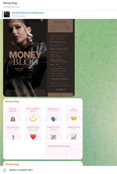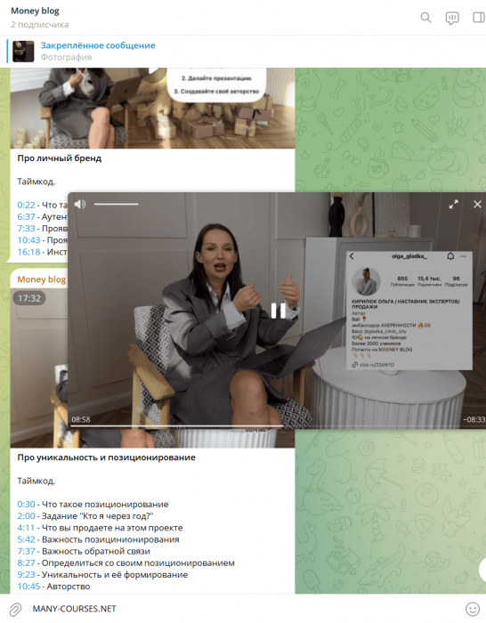 Вы находитесь на странице товара «Ольга Кирилюк - Money blog. Тариф Миллиардер», это материал который, мы надеемся, принесет вам пользу. Данный курс расположен на платформе «Канал Telegram».Скриншоты с платформы на которой расположены материалы вы можете найти выше. В нашем магазине курсы доступны по самым выгодным ценам. Если бы вы покупали у самого автора, то данный курс вам обошелся 60000 рублей. Вы получаете этот курс, купив в нашем магазине MANY-COURSES.NET, с огромной скидкой, всего 990 рублей. Обучающий курс входит в рубрику «SEO и SMM / Бизнес, менеджмент, продажи / Реклама и маркетинг», вы можете поискать другие сливы курсов в этой рубрике. В нашем магазине Вы найдёте ещё много курсов от автора «Ольга Кирилюк», достаточно ввести в поиск имя автора.