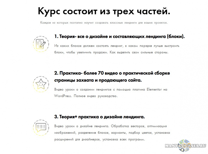 Этот курс, Юлия Литвина записала для тех, кто хочет эффективно осуществлять продажи курсов, вебинаров и тренингов при помощи грамотно составленного лендинга. Во время обучения вы научитесь делать качественный продающий лендинг, в котором учтены все нюансы покупательского спроса. Состоит курс из 3-х частей: теория о дизайне и составляющих лендинга, практика сборки продающего сайта, дизайн лендинга.
