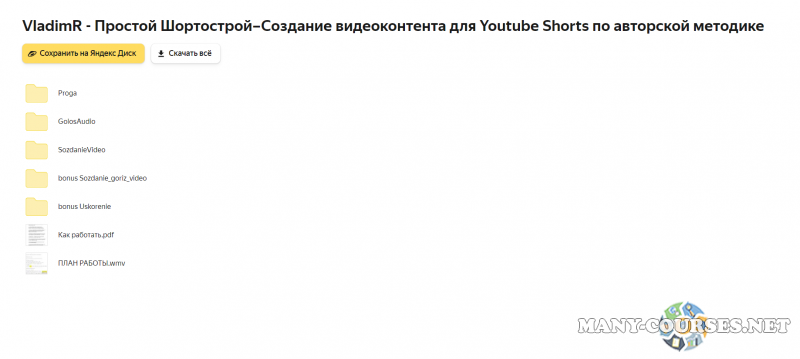 Вы находитесь на странице товара «Простой Шортострой – Создание видеоконтента для Youtube Shorts по авторской методике (2023)», это материал 2023 года, который, мы надеемся, принесет вам пользу. Данный курс расположен на платформе «Яндекс Диск».Скриншоты с платформы на которой расположены материалы вы можете найти выше. В нашем магазине курсы доступны по самым выгодным ценам. Вы можете перейти на оригинальный продажник, после чего принять решение о покупке. Если бы вы покупали у самого автора, то данный курс вам обошелся 1070 рублей. Вы получаете этот курс, купив в нашем магазине MANY-COURSES.NET, с огромной скидкой, всего 150 рублей. Обучающий курс входит в рубрику «YouTube / SEO и SMM / Бизнес, менеджмент, продажи», вы можете поискать другие сливы курсов в этой рубрике. В нашем магазине Вы найдёте ещё много курсов от автора «Простой Шортострой», достаточно ввести в поиск имя автора.