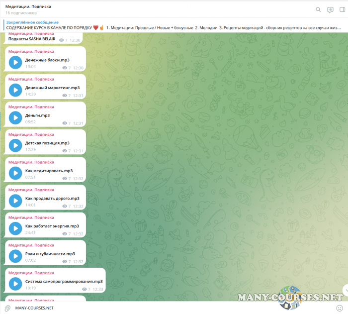 Вы находитесь на странице товара «Ab.Brand - Подписка 111 медитаций. Премиум ежемесячный (2024)», это материал 2024 года, который, мы надеемся, принесет вам пользу. Данный курс расположен на платформе «Канал Telegram».Скриншоты с платформы на которой расположены материалы вы можете найти выше. В нашем магазине курсы доступны по самым выгодным ценам. Вы можете перейти на оригинальный продажник, после чего принять решение о покупке. Если бы вы покупали у самого автора, то данный курс вам обошелся 33333 рублей. Вы получаете этот курс, купив в нашем магазине MANY-COURSES.NET, с огромной скидкой, всего 1990 рублей. Обучающий курс входит в рубрику «Курсы от Александры Беляковой / Эзотерика и оккультизм / Медитации», вы можете поискать другие сливы курсов в этой рубрике. В нашем магазине Вы найдёте ещё много курсов от автора «Александра Белякова», достаточно ввести в поиск имя автора.