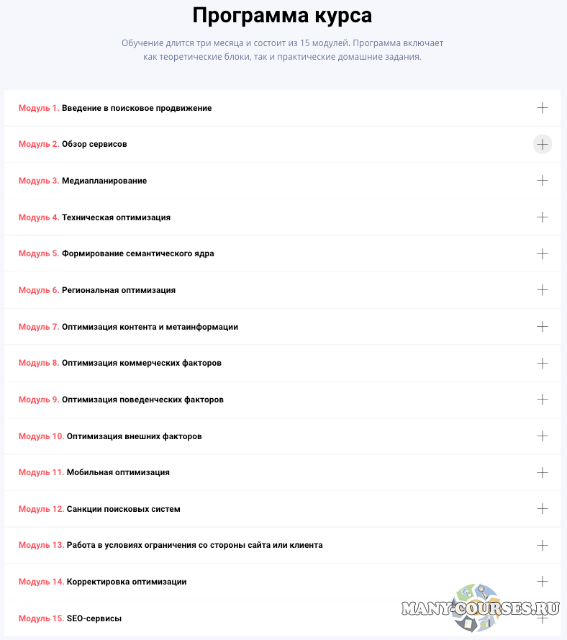 Программа курса также рассчитана на руководителей компаний и топ-менеджеров, стремящихся увеличить поток клиентов. Понимание принципов SEO поможет вам найти профессионального подрядчика и говорить с ним на одном языке.
