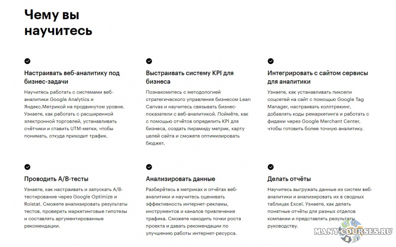 Вы находитесь на странице товара «Skillbox - Веб-аналитик с нуля до Junior», это материал 2021 года, который, мы надеемся, принесет вам пользу. Данный курс расположен на платформе «Облако Mail».Скриншоты с платформы на которой расположены материалы вы можете найти выше. В нашем магазине курсы доступны по самым выгодным ценам. Вы можете перейти на оригинальный продажник, после чего принять решение о покупке. Если бы вы покупали у самого автора, то данный курс вам обошелся 42539 рублей. Вы получаете этот курс, купив в нашем магазине MANY-COURSES.NET, с огромной скидкой, всего 450 рублей. Обучающий курс входит в рубрику «Курсы SkillBox / SEO и SMM / Реклама и маркетинг», вы можете поискать другие сливы курсов в этой рубрике. В нашем магазине Вы найдёте ещё много курсов от автора «Илья Николаев, Сергей Филатов», достаточно ввести в поиск имя автора.
