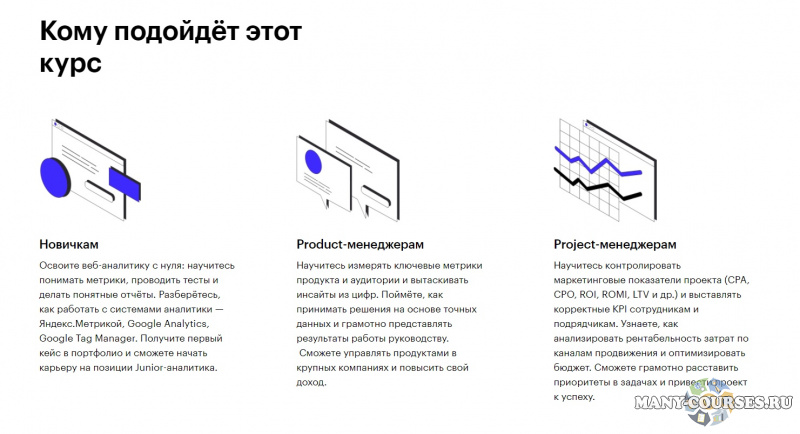 Освоите веб-аналитику с нуля: научитесь понимать метрики, проводить тесты и делать понятные отчёты. Разберётесь, как работать с системами аналитики — Яндекс.Метрикой, Google Analytics, Google Tag Manager. Получите первый кейс в портфолио и сможете начать карьеру на позиции Junior-аналитика. - Product-менеджерам