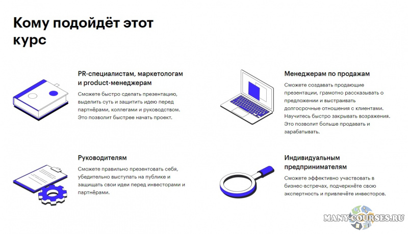 Сможете быстро сделать презентацию, выделить суть и защитить идею перед партнёрами, коллегами и руководством. Это позволит быстрее начать проект. - Менеджерам по продажам