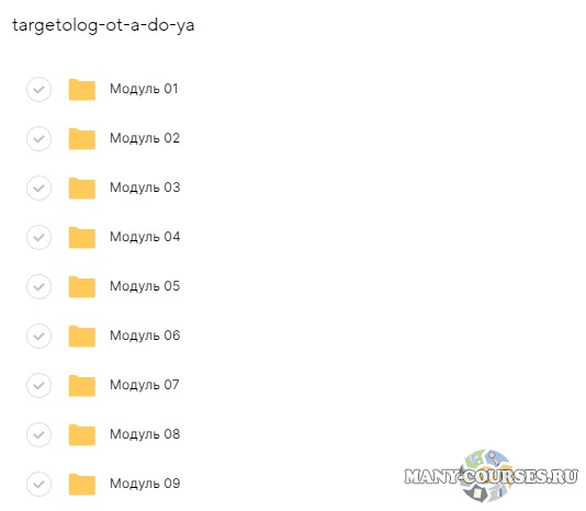 Каждый из инфопродуктов который представлен в нашем магазине приобретался в складчину, соответственно и цена намного ниже чем у автора. Для вас доступна полная запись инфопродукта со всеми раздаточными материалами для самостоятельного прохождения, но без обратной связи от автора.