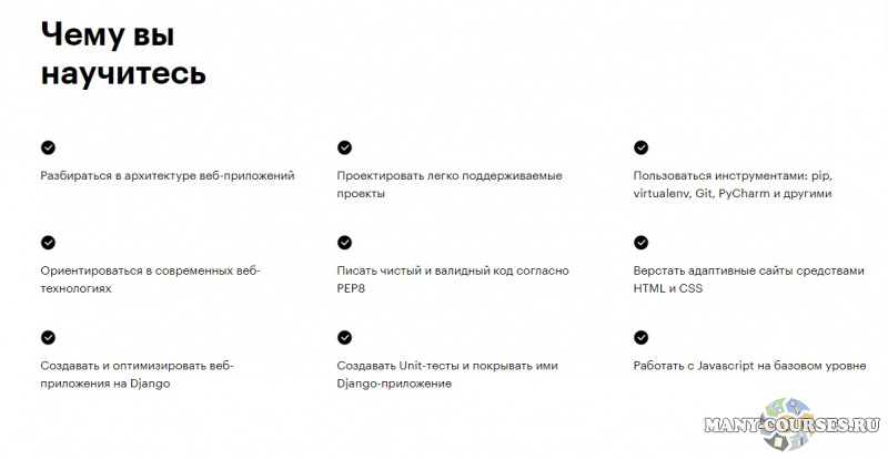Вы научитесь верстать веб-страницы, писать и оптимизировать веб-приложения на Django, продолжите развиваться в IT-индустрии и станете более востребованным разработчиком.
