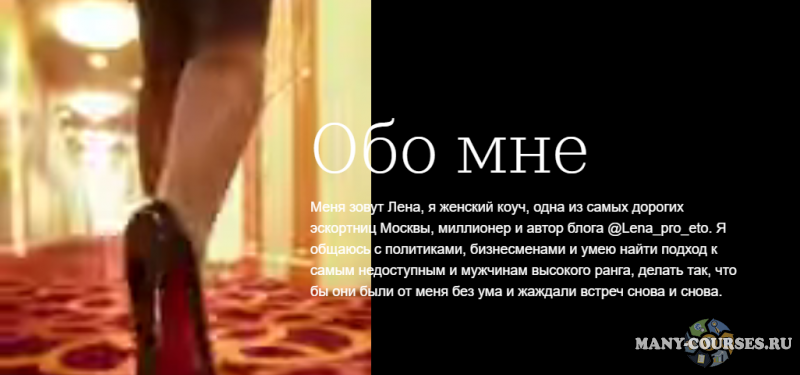 Меня зовут Лена, я женский коуч, одна из самых дорогих эскортниц Москвы, миллионер и автор блога @Lena_pro_eto. Я общаюсь с политиками, бизнесменами и умею найти подход к самым недоступным и мужчинам высокого ранга, делать так, что бы они были от меня без ума и жаждали встреч снова и снова.