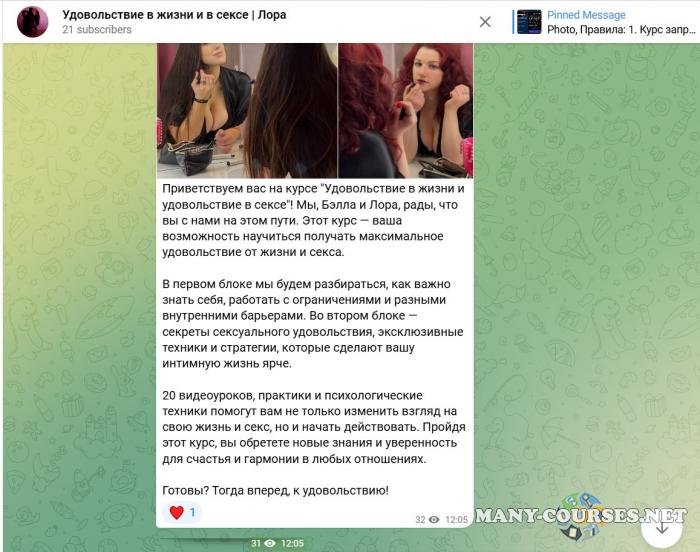 Вы находитесь на странице товара «Bulkabel / Бэлла Левицкая - Удовольствие в жизни и удовольствие в сексе. Тариф Я сам», это материал который, мы надеемся, принесет вам пользу. Данный курс расположен на платформе «Канал Telegram».Скриншоты с платформы на которой расположены материалы вы можете найти выше. В нашем магазине курсы доступны по самым выгодным ценам. Если бы вы покупали у самого автора, то данный курс вам обошелся 9600 рублей. Вы получаете этот курс, купив в нашем магазине MANY-COURSES.NET, с огромной скидкой, всего 890 рублей. Обучающий курс входит в рубрику «Соблазнение и пикап / Саморазвитие и мотивация / Эзотерика и оккультизм», вы можете поискать другие сливы курсов в этой рубрике. В нашем магазине Вы найдёте ещё много курсов от автора «Бэлла Левицкая», достаточно ввести в поиск имя автора.
