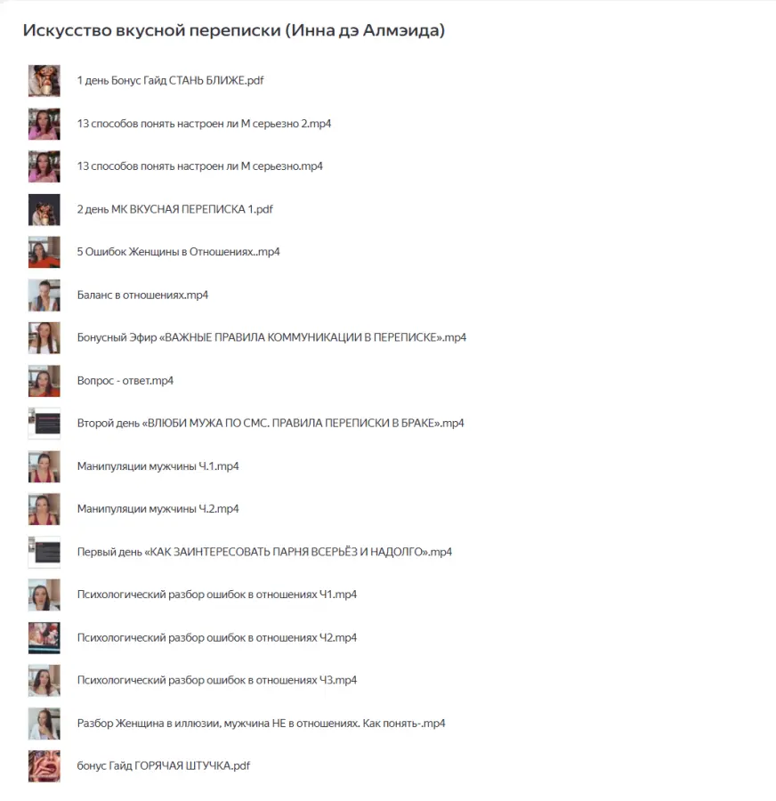 Вы находитесь на странице товара «Ladies School / Inna de Almeida - Комбо Искусство вкусной переписки и Перезагрузка подсознания», это материал 2025 года, который, мы надеемся, принесет вам пользу. Данный курс расположен на платформе «Яндекс Диск».Скриншоты с платформы на которой расположены материалы вы можете найти выше. В нашем магазине курсы доступны по самым выгодным ценам. Если бы вы покупали у самого автора, то данный курс вам обошелся 9980 рублей. Вы получаете этот курс, купив в нашем магазине MANY-COURSES.NET, с огромной скидкой, всего 390 рублей. Обучающий курс входит в рубрику «Соблазнение и пикап», вы можете поискать другие сливы курсов в этой рубрике. В нашем магазине Вы найдёте ещё много курсов от автора «Inna de Almeida», достаточно ввести в поиск имя автора.