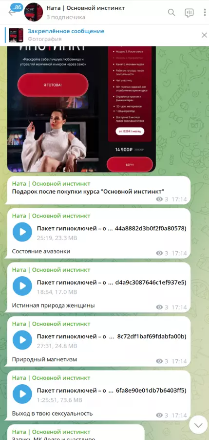 Вы находитесь на странице товара «nataytali / Наталья Герасимова - Основной инстинкт. Тариф Глубже», это материал 2025 года, который, мы надеемся, принесет вам пользу. Данный курс расположен на платформе «Канал Telegram».Скриншоты с платформы на которой расположены материалы вы можете найти выше. В нашем магазине курсы доступны по самым выгодным ценам. Вы можете перейти на оригинальный продажник, после чего принять решение о покупке. Если бы вы покупали у самого автора, то данный курс вам обошелся 24900 рублей. Вы получаете этот курс, купив в нашем магазине MANY-COURSES.NET, с огромной скидкой, всего 1890 рублей. Обучающий курс входит в рубрику «Соблазнение и пикап», вы можете поискать другие сливы курсов в этой рубрике. В нашем магазине Вы найдёте ещё много курсов от автора «Наталья Герасимова», достаточно ввести в поиск имя автора.