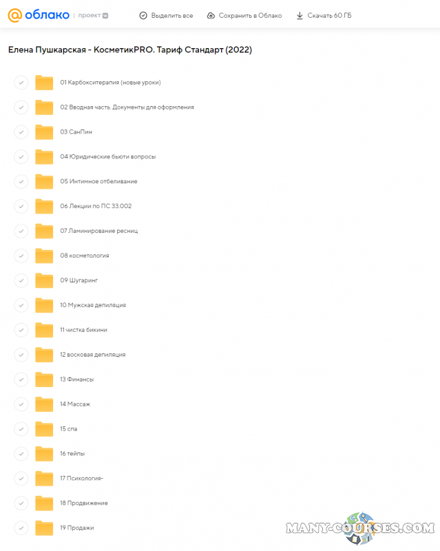 Вы находитесь на странице товара «Елена Пушкарская - КосметикPRO. Тариф Стандарт», это материал 2022 года, который, мы надеемся, принесет вам пользу. Данный курс расположен на платформе «Облако Mail».Скриншоты с платформы на которой расположены материалы вы можете найти выше. В нашем магазине курсы доступны по самым выгодным ценам. Вы можете перейти на оригинальный продажник, после чего принять решение о покупке. Если бы вы покупали у самого автора, то данный курс вам обошелся 21500 рублей. Вы получаете этот курс, купив в нашем магазине MANY-COURSES.NET, с огромной скидкой, всего 890 рублей. Обучающий курс входит в рубрику «Стиль и имидж», вы можете поискать другие сливы курсов в этой рубрике. В нашем магазине Вы найдёте ещё много курсов от автора «Елена Пушкарская», достаточно ввести в поиск имя автора.