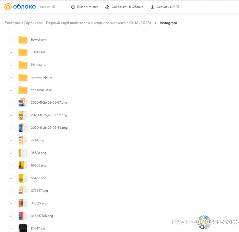 Вы находитесь на странице товара «Екатерина Горбачева - Первый клуб любителей выгодного шопинга в США», это материал 2023 года, который, мы надеемся, принесет вам пользу. Данный курс расположен на платформе «Облако Mail».Скриншоты с платформы на которой расположены материалы вы можете найти выше. В нашем магазине курсы доступны по самым выгодным ценам. Вы получаете этот курс, купив в нашем магазине MANY-COURSES.NET, с огромной скидкой, всего 270 рублей. Обучающий курс входит в рубрику «Стиль и имидж», вы можете поискать другие сливы курсов в этой рубрике. В нашем магазине Вы найдёте ещё много курсов от автора «Екатерина Горбачева», достаточно ввести в поиск имя автора.