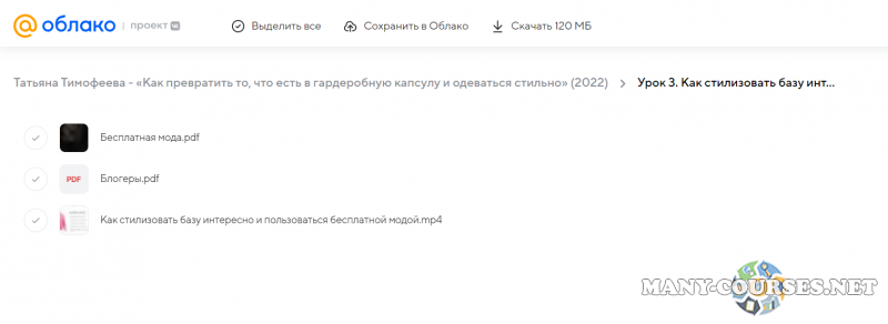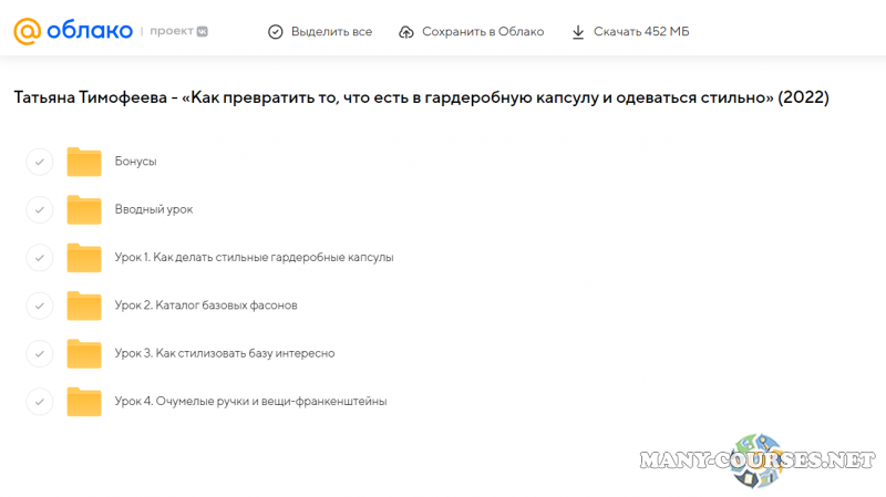 Вы находитесь на странице товара «Татьяна Тимофеева - «Как превратить то, что есть в гардеробную капсулу и одеваться стильно» (2022)», это материал 2022 года, который, мы надеемся, принесет вам пользу. Данный курс расположен на платформе «Облако Mail».Скриншоты с платформы на которой расположены материалы вы можете найти выше. В нашем магазине курсы доступны по самым выгодным ценам. Вы можете перейти на оригинальный продажник, после чего принять решение о покупке. Вы получаете этот курс, купив в нашем магазине MANY-COURSES.NET, с огромной скидкой, всего 390 рублей. Обучающий курс входит в рубрику «Стиль и имидж», вы можете поискать другие сливы курсов в этой рубрике. В нашем магазине Вы найдёте ещё много курсов от автора «Татьяна Тимофеева», достаточно ввести в поиск имя автора.