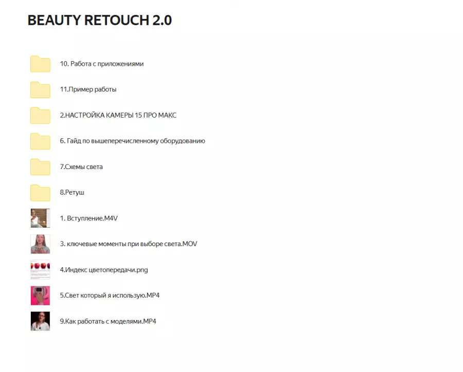 Вы находитесь на странице товара «Ирина Шестунова - Beauty Retouch 2.0», это материал который, мы надеемся, принесет вам пользу. Данный курс расположен на платформе «Яндекс Диск».Скриншоты с платформы на которой расположены материалы вы можете найти выше. В нашем магазине курсы доступны по самым выгодным ценам. Вы можете перейти на оригинальный продажник, после чего принять решение о покупке. Если бы вы покупали у самого автора, то данный курс вам обошелся 3990 рублей. Вы получаете этот курс, купив в нашем магазине MANY-COURSES.NET, с огромной скидкой, всего 490 рублей. Обучающий курс входит в рубрику «Стиль и имидж / Видео и фото», вы можете поискать другие сливы курсов в этой рубрике. В нашем магазине Вы найдёте ещё много курсов от автора «Ирина Шестунова», достаточно ввести в поиск имя автора.
