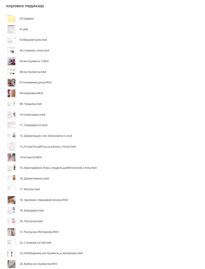 Вы находитесь на странице товара «veronika_korovko / Вероника Коровко - Эстетической и медицинский педикюр (2025)», это материал 2025 года, который, мы надеемся, принесет вам пользу. Данный курс расположен на платформе «Яндекс Диск».Скриншоты с платформы на которой расположены материалы вы можете найти выше. В нашем магазине курсы доступны по самым выгодным ценам. Вы можете перейти на оригинальный продажник, после чего принять решение о покупке. Вы получаете этот курс, купив в нашем магазине MANY-COURSES.NET, с огромной скидкой, всего 490 рублей. Обучающий курс входит в рубрику «Стиль и имидж», вы можете поискать другие сливы курсов в этой рубрике. В нашем магазине Вы найдёте ещё много курсов от автора «Вероника Коровко», достаточно ввести в поиск имя автора.