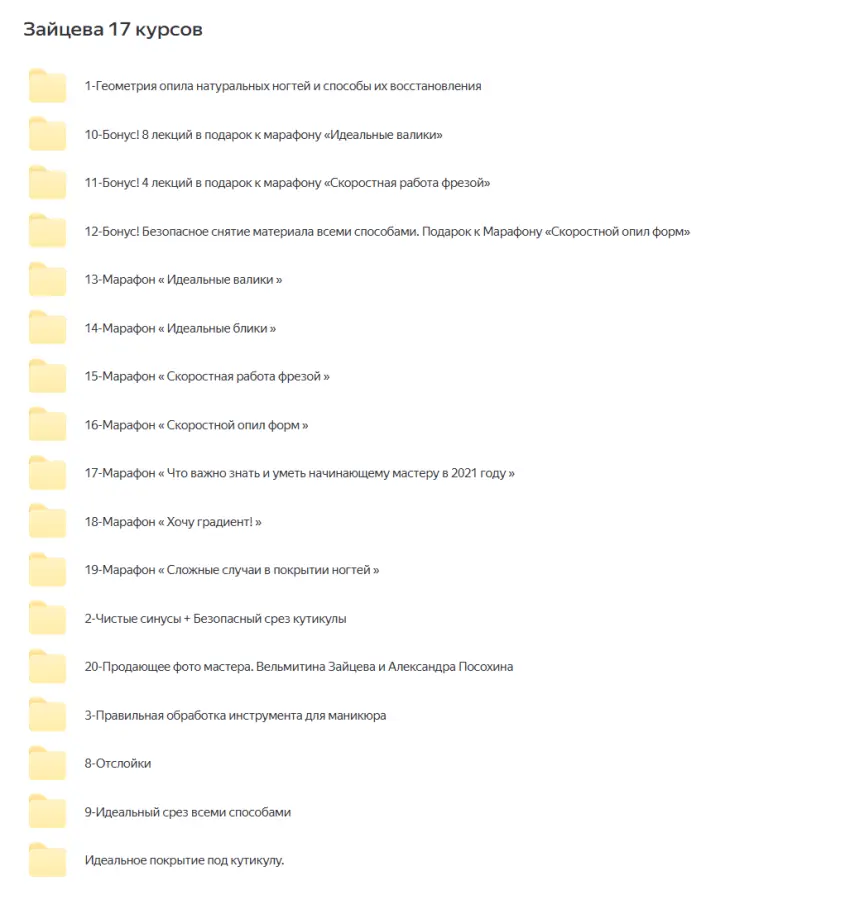сборник Зайцевой (17 курсов) — комплекс обучающих программ по маникюру, технике опила, фрезеру, работе с кутикулой и созданию идеальных покрытий.