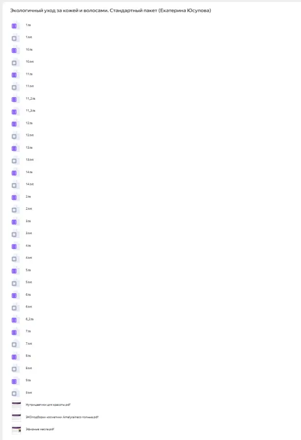 Вы находитесь на странице товара «Екатерина Юсупова - Экологичный уход за кожей и волосами. Стандартный пакет», это материал который, мы надеемся, принесет вам пользу. Данный курс расположен на платформе «Яндекс Диск».Скриншоты с платформы на которой расположены материалы вы можете найти выше. В нашем магазине курсы доступны по самым выгодным ценам. Вы можете перейти на оригинальный продажник, после чего принять решение о покупке. Вы получаете этот курс, купив в нашем магазине MANY-COURSES.NET, с огромной скидкой, всего 179 рублей. Обучающий курс входит в рубрику «Стиль и имидж / Уход за кожей и телом», вы можете поискать другие сливы курсов в этой рубрике. В нашем магазине Вы найдёте ещё много курсов от автора «Екатерина Юсупова», достаточно ввести в поиск имя автора.