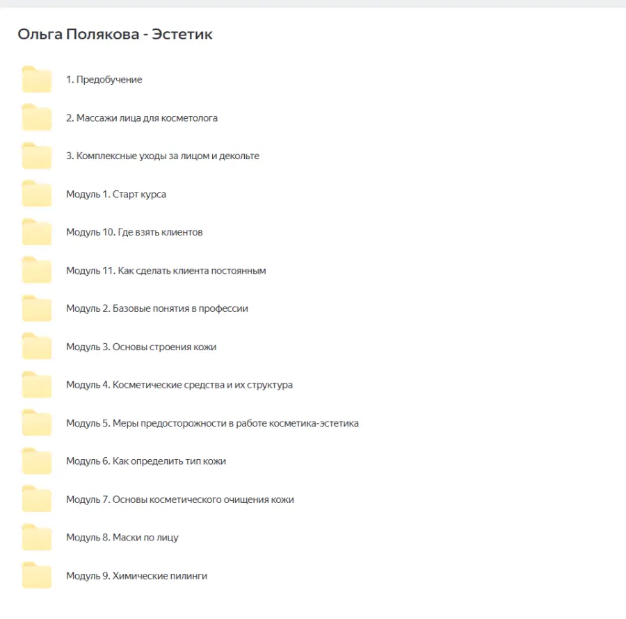 Вы находитесь на странице товара «Ольга Полякова - Профессия Косметик-эстетист», это материал который, мы надеемся, принесет вам пользу. Данный курс расположен на платформе «Яндекс Диск».Скриншоты с платформы на которой расположены материалы вы можете найти выше. В нашем магазине курсы доступны по самым выгодным ценам. Вы получаете этот курс, купив в нашем магазине MANY-COURSES.NET, с огромной скидкой, всего 479 рублей. Обучающий курс входит в рубрику «Макияж и косметология», вы можете поискать другие сливы курсов в этой рубрике. В нашем магазине Вы найдёте ещё много курсов от автора «Ольга Полякова», достаточно ввести в поиск имя автора.