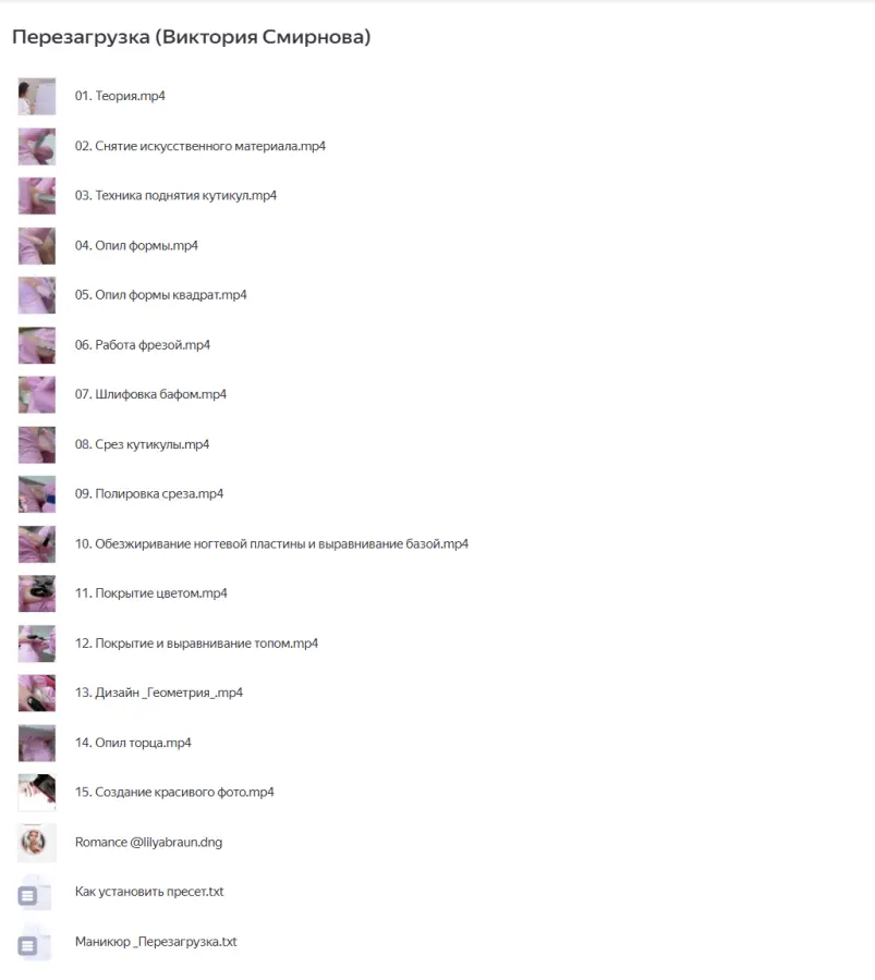 Вы находитесь на странице товара «Виктория Смирнова - Онлайн курс по маникюру Перезагрузка», это материал который, мы надеемся, принесет вам пользу. Данный курс расположен на платформе «Яндекс Диск».Скриншоты с платформы на которой расположены материалы вы можете найти выше. В нашем магазине курсы доступны по самым выгодным ценам. Вы получаете этот курс, купив в нашем магазине MANY-COURSES.NET, с огромной скидкой, всего 247 рублей. Обучающий курс входит в рубрику «Маникюр и ногтевой сервис», вы можете поискать другие сливы курсов в этой рубрике. В нашем магазине Вы найдёте ещё много курсов от автора «Виктория Смирнова», достаточно ввести в поиск имя автора.