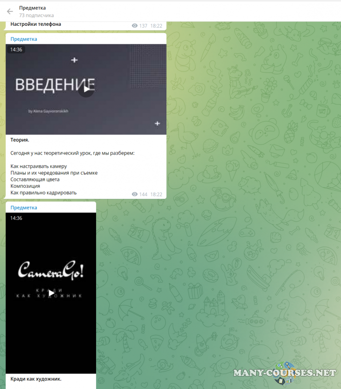 Вы находитесь на странице товара «Алена Гайворонских - CameraGo. Курс по предметной съемке и видеомонтажу на телефоне», это материал 2023 года, который, мы надеемся, принесет вам пользу. Данный курс расположен на платформе «Канал Telegram».Скриншоты с платформы на которой расположены материалы вы можете найти выше. В нашем магазине курсы доступны по самым выгодным ценам. Вы можете перейти на оригинальный продажник, после чего принять решение о покупке. Вы получаете этот курс, купив в нашем магазине MANY-COURSES.NET, с огромной скидкой, всего 770 рублей. Обучающий курс входит в рубрику «Видео и фото», вы можете поискать другие сливы курсов в этой рубрике. В нашем магазине Вы найдёте ещё много курсов от автора «Алена Гайворонских», достаточно ввести в поиск имя автора.