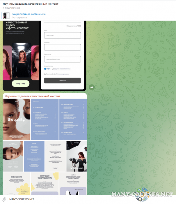 Вы находитесь на странице товара «anastasile - The quality 2.0. Научись создавать качественный видео и фото-контент», это материал который, мы надеемся, принесет вам пользу. Данный курс расположен на платформе «Канал Telegram».Скриншоты с платформы на которой расположены материалы вы можете найти выше. В нашем магазине курсы доступны по самым выгодным ценам. Вы получаете этот курс, купив в нашем магазине MANY-COURSES.NET, с огромной скидкой, всего 1100 рублей. Обучающий курс входит в рубрику «Видео и фото», вы можете поискать другие сливы курсов в этой рубрике. В нашем магазине Вы найдёте ещё много курсов от автора «anastasile», достаточно ввести в поиск имя автора.