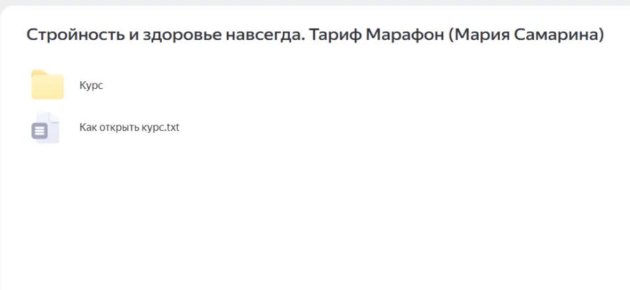 Вы находитесь на странице товара «Мария Самарина - Стройность и здоровье навсегда. Тариф Марафон», это материал который, мы надеемся, принесет вам пользу. Данный курс расположен на платформе «Яндекс Диск».Скриншоты с платформы на которой расположены материалы вы можете найти выше. В нашем магазине курсы доступны по самым выгодным ценам. Вы получаете этот курс, купив в нашем магазине MANY-COURSES.NET, с огромной скидкой, всего 379 рублей. Обучающий курс входит в рубрику «Здоровье и Спорт», вы можете поискать другие сливы курсов в этой рубрике. В нашем магазине Вы найдёте ещё много курсов от автора «Мария Самарина», достаточно ввести в поиск имя автора.