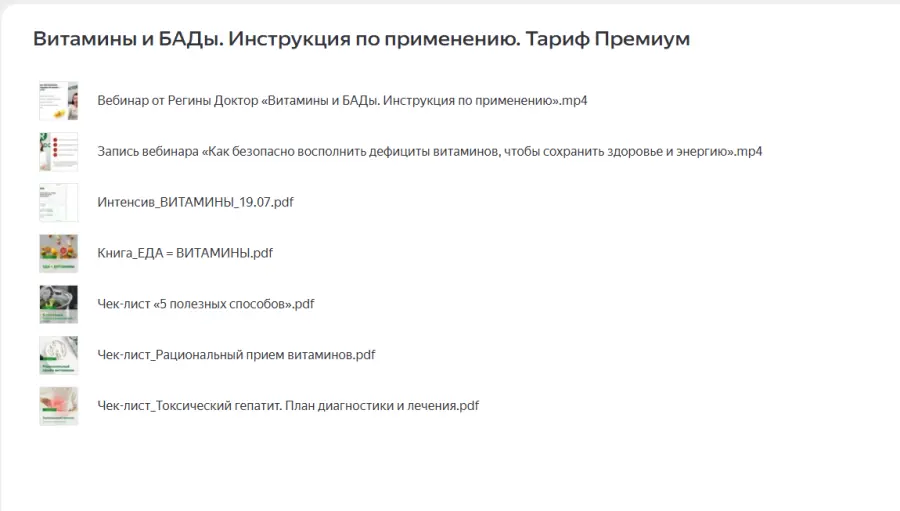 Вы находитесь на странице товара «Regina Doctor / Регина Ахуньянова - Витамины и БАДы. Инструкция по применению. Тариф Премиум», это материал который, мы надеемся, принесет вам пользу. Данный курс расположен на платформе «Яндекс Диск».Скриншоты с платформы на которой расположены материалы вы можете найти выше. В нашем магазине курсы доступны по самым выгодным ценам. Вы можете перейти на оригинальный продажник, после чего принять решение о покупке. Вы получаете этот курс, купив в нашем магазине MANY-COURSES.NET, с огромной скидкой, всего 149 рублей. Обучающий курс входит в рубрику «Здоровье и Спорт», вы можете поискать другие сливы курсов в этой рубрике. В нашем магазине Вы найдёте ещё много курсов от автора «Регина Ахуньянова», достаточно ввести в поиск имя автора.