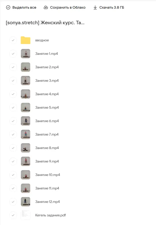 Вы находитесь на странице товара «sonya.stretch / Соня Сафронова - Женский курс. Тариф 2», это материал который, мы надеемся, принесет вам пользу. Данный курс расположен на платформе «Облако Mail».Скриншоты с платформы на которой расположены материалы вы можете найти выше. В нашем магазине курсы доступны по самым выгодным ценам. Вы получаете этот курс, купив в нашем магазине MANY-COURSES.NET, с огромной скидкой, всего 149 рублей. Обучающий курс входит в рубрику «Здоровье и Спорт», вы можете поискать другие сливы курсов в этой рубрике. В нашем магазине Вы найдёте ещё много курсов от автора «Соня Сафронова», достаточно ввести в поиск имя автора.