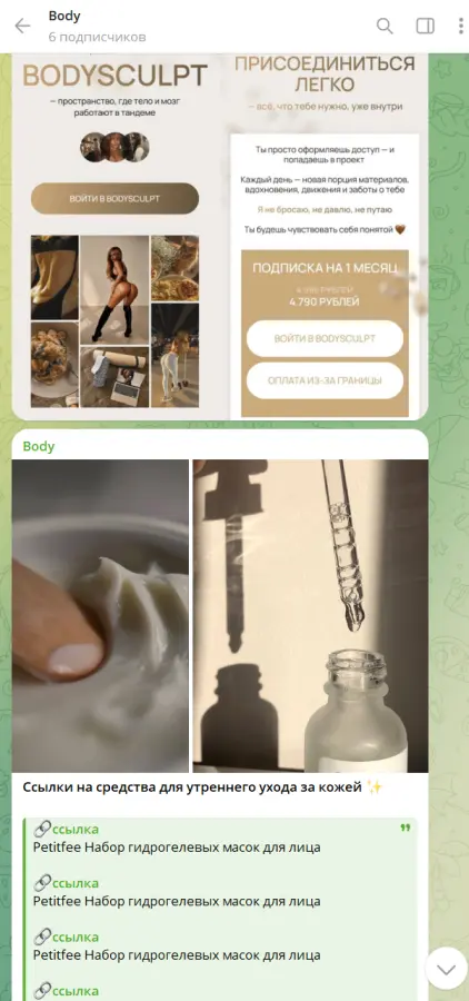 Вы находитесь на странице товара «Варвара Беллами - BodySculpt», это материал который, мы надеемся, принесет вам пользу. Данный курс расположен на платформе «Канал Telegram».Скриншоты с платформы на которой расположены материалы вы можете найти выше. В нашем магазине курсы доступны по самым выгодным ценам. Вы можете перейти на оригинальный продажник, после чего принять решение о покупке. Если бы вы покупали у самого автора, то данный курс вам обошелся 4790 рублей. Вы получаете этот курс, купив в нашем магазине MANY-COURSES.NET, с огромной скидкой, всего 790 рублей. Обучающий курс входит в рубрику «Здоровье и Спорт», вы можете поискать другие сливы курсов в этой рубрике. В нашем магазине Вы найдёте ещё много курсов от автора «Варвара Беллами», достаточно ввести в поиск имя автора.