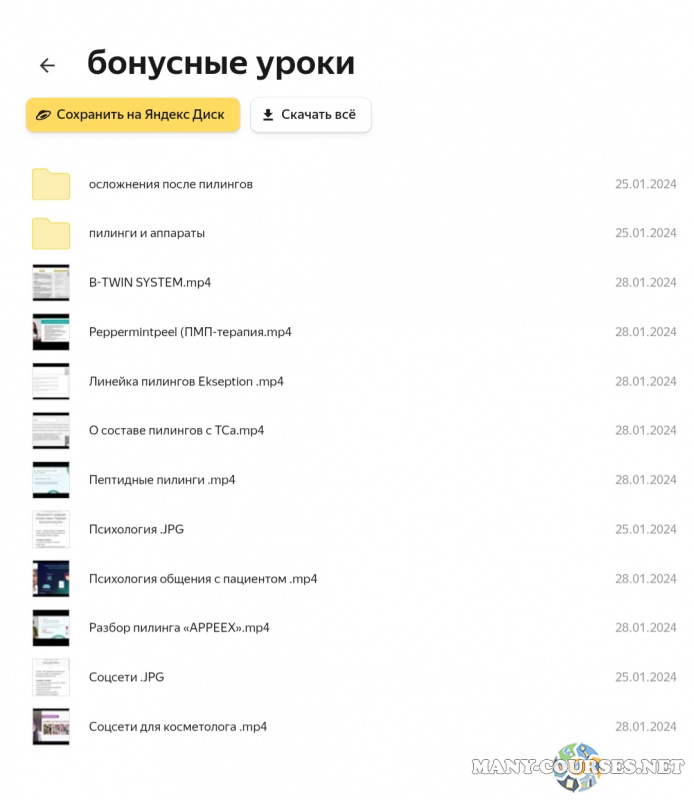 Вы находитесь на странице товара «Юлия Нартя - Пилинги. START! Тариф профессиональный», это материал 2024 года, который, мы надеемся, принесет вам пользу. Данный курс расположен на платформе «Яндекс Диск».Скриншоты с платформы на которой расположены материалы вы можете найти выше. В нашем магазине курсы доступны по самым выгодным ценам. Вы получаете этот курс, купив в нашем магазине MANY-COURSES.NET, с огромной скидкой, всего 990 рублей. Обучающий курс входит в рубрику «Здоровье и Спорт», вы можете поискать другие сливы курсов в этой рубрике. В нашем магазине Вы найдёте ещё много курсов от автора «Юлия Нартя», достаточно ввести в поиск имя автора.