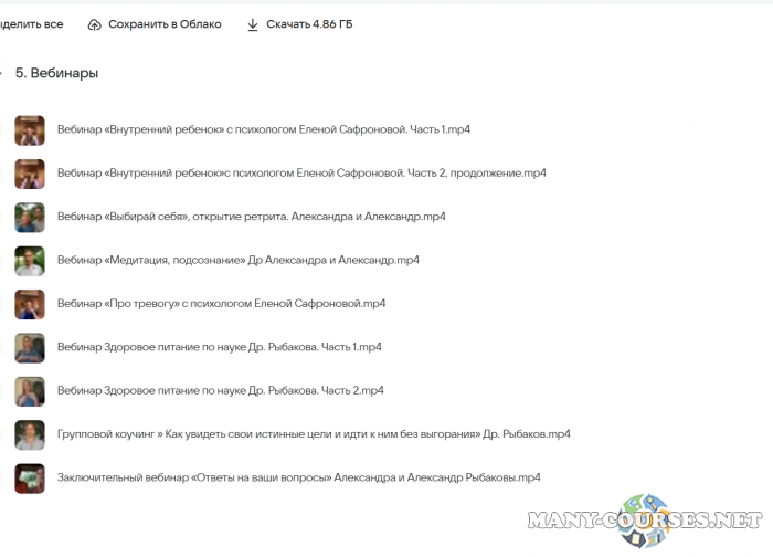 Вы находитесь на странице товара «Александра Рыбакова - Ретрит», это материал 2022 года, который, мы надеемся, принесет вам пользу. Данный курс расположен на платформе «Облако Mail».Скриншоты с платформы на которой расположены материалы вы можете найти выше. В нашем магазине курсы доступны по самым выгодным ценам. Вы получаете этот курс, купив в нашем магазине MANY-COURSES.NET, с огромной скидкой, всего 590 рублей. Обучающий курс входит в рубрику «Здоровье и Спорт», вы можете поискать другие сливы курсов в этой рубрике. В нашем магазине Вы найдёте ещё много курсов от автора «Александра Рыбакова», достаточно ввести в поиск имя автора.