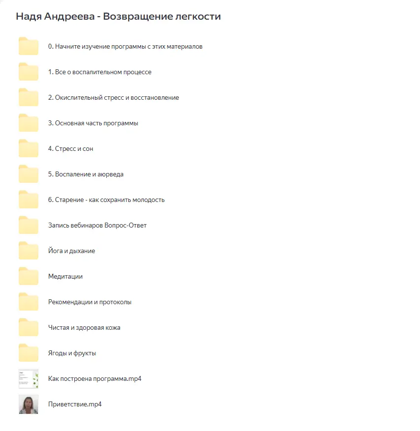 Вы находитесь на странице товара «Надя Андреева - Возвращение легкости», это материал который, мы надеемся, принесет вам пользу. Данный курс расположен на платформе «Яндекс Диск».Скриншоты с платформы на которой расположены материалы вы можете найти выше. В нашем магазине курсы доступны по самым выгодным ценам. Вы получаете этот курс, купив в нашем магазине MANY-COURSES.NET, с огромной скидкой, всего 270 рублей. Обучающий курс входит в рубрику «Здоровье и Спорт / Питание и диеты», вы можете поискать другие сливы курсов в этой рубрике. В нашем магазине Вы найдёте ещё много курсов от автора «Надя Андреева», достаточно ввести в поиск имя автора.