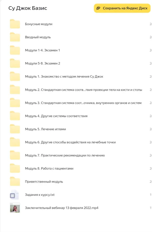 Вы находитесь на странице товара «Ольга Скубиева - Су Джок Базис», это материал который, мы надеемся, принесет вам пользу. Данный курс расположен на платформе «Яндекс Диск».Скриншоты с платформы на которой расположены материалы вы можете найти выше. В нашем магазине курсы доступны по самым выгодным ценам. Вы можете перейти на оригинальный продажник, после чего принять решение о покупке. Вы получаете этот курс, купив в нашем магазине MANY-COURSES.NET, с огромной скидкой, всего 530 рублей. Обучающий курс входит в рубрику «Здоровье и Спорт», вы можете поискать другие сливы курсов в этой рубрике. В нашем магазине Вы найдёте ещё много курсов от автора «Ольга Скубиева», достаточно ввести в поиск имя автора.