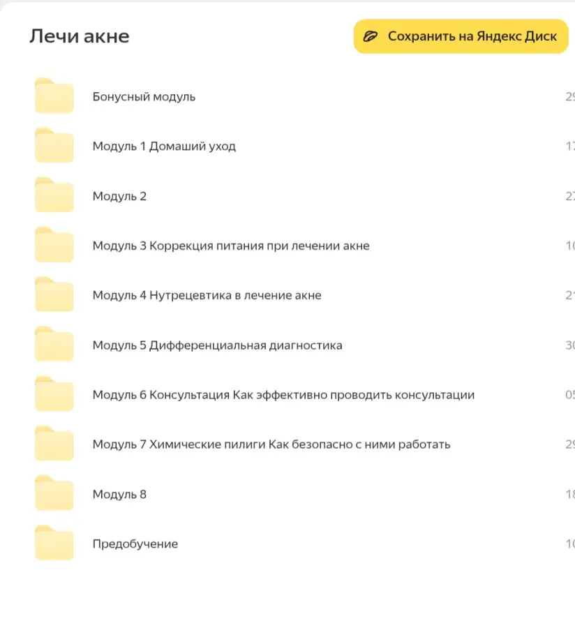 Вы находитесь на странице товара «Валерия Лоскутова - Лечи акне правильно», это материал который, мы надеемся, принесет вам пользу. Данный курс расположен на платформе «Яндекс Диск».Скриншоты с платформы на которой расположены материалы вы можете найти выше. В нашем магазине курсы доступны по самым выгодным ценам. Вы получаете этот курс, купив в нашем магазине MANY-COURSES.NET, с огромной скидкой, всего 359 рублей. Обучающий курс входит в рубрику «Здоровье и Спорт», вы можете поискать другие сливы курсов в этой рубрике. В нашем магазине Вы найдёте ещё много курсов от автора «Валерия Лоскутова», достаточно ввести в поиск имя автора.