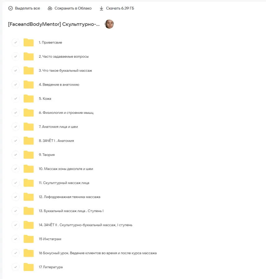 Вы находитесь на странице товара «FaceandBodyMentor / Владимир Акимов - Скульптурно-буккальный массаж лица PRO», это материал который, мы надеемся, принесет вам пользу. Данный курс расположен на платформе «Облако Mail».Скриншоты с платформы на которой расположены материалы вы можете найти выше. В нашем магазине курсы доступны по самым выгодным ценам. Вы получаете этот курс, купив в нашем магазине MANY-COURSES.NET, с огромной скидкой, всего 290 рублей. Обучающий курс входит в рубрику «Здоровье и Спорт», вы можете поискать другие сливы курсов в этой рубрике. В нашем магазине Вы найдёте ещё много курсов от автора «Владимир Акимов», достаточно ввести в поиск имя автора.