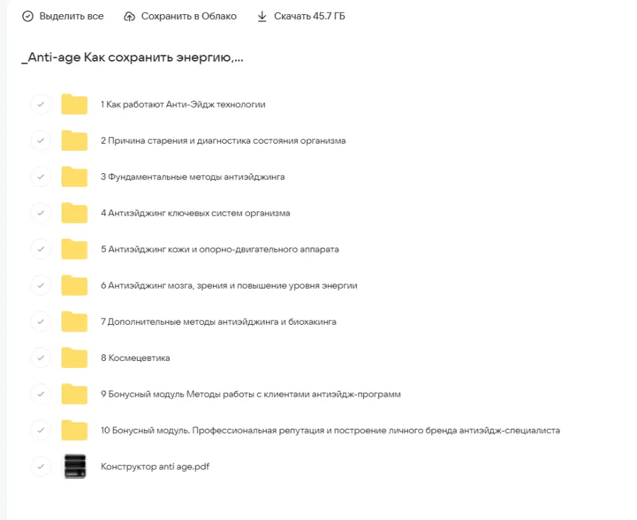 Вы находитесь на странице товара «EDPRO - Anti-age: как сохранить энергию, здоровье и молодость. Тариф Профессионал», это материал который, мы надеемся, принесет вам пользу. Данный курс расположен на платформе «Облако Mail».Скриншоты с платформы на которой расположены материалы вы можете найти выше. В нашем магазине курсы доступны по самым выгодным ценам. Если бы вы покупали у самого автора, то данный курс вам обошелся 62433 рублей. Вы получаете этот курс, купив в нашем магазине MANY-COURSES.NET, с огромной скидкой, всего 890 рублей. Обучающий курс входит в рубрику «Здоровье и Спорт», вы можете поискать другие сливы курсов в этой рубрике. В нашем магазине Вы найдёте ещё много курсов от автора «Елена Желянина, Ирина Брылевская, Павел Попов», достаточно ввести в поиск имя автора.
