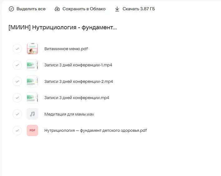 Вы находитесь на странице товара «МИИН / Ната Гончар - Нутрициология - фундамент детского здоровья. Тариф слушаю и учавствую», это материал который, мы надеемся, принесет вам пользу. Данный курс расположен на платформе «Облако Mail».Скриншоты с платформы на которой расположены материалы вы можете найти выше. В нашем магазине курсы доступны по самым выгодным ценам. Вы получаете этот курс, купив в нашем магазине MANY-COURSES.NET, с огромной скидкой, всего 239 рублей. Обучающий курс входит в рубрику «Здоровье и Спорт / Дети и родители», вы можете поискать другие сливы курсов в этой рубрике. В нашем магазине Вы найдёте ещё много курсов от автора «Ната Гончар», достаточно ввести в поиск имя автора.
