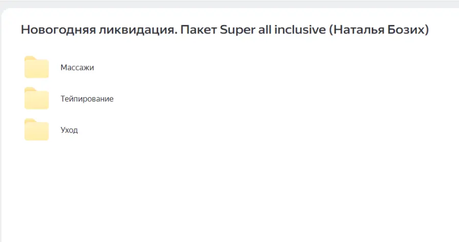 Вы находитесь на странице товара «Guasha Bbos / Наталья Бозих - Новогодняя ликвидация. Пакет Super all inclusive», это материал который, мы надеемся, принесет вам пользу. Данный курс расположен на платформе «Яндекс Диск».Скриншоты с платформы на которой расположены материалы вы можете найти выше. В нашем магазине курсы доступны по самым выгодным ценам. Вы получаете этот курс, купив в нашем магазине MANY-COURSES.NET, с огромной скидкой, всего 695 рублей. Обучающий курс входит в рубрику «Здоровье и Спорт», вы можете поискать другие сливы курсов в этой рубрике. В нашем магазине Вы найдёте ещё много курсов от автора «Наталья Бозих», достаточно ввести в поиск имя автора.